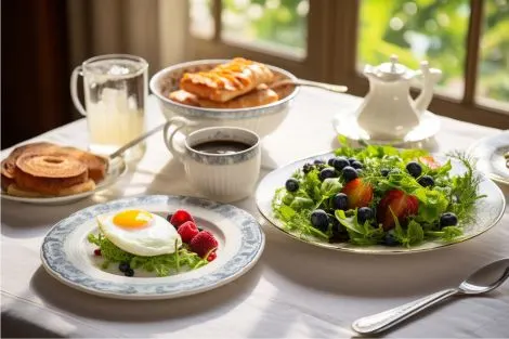 - 3 repas principaux (petit-déjeuner, déjeuner, dîner)